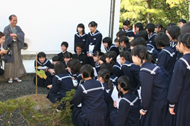 ![]() Kyo-Suzume Disaster Area Support, November 4, 2011, Ginkakuji Temple Welcoming students from Koyo Junior High School, Soma City, Fukushima Prefecture |